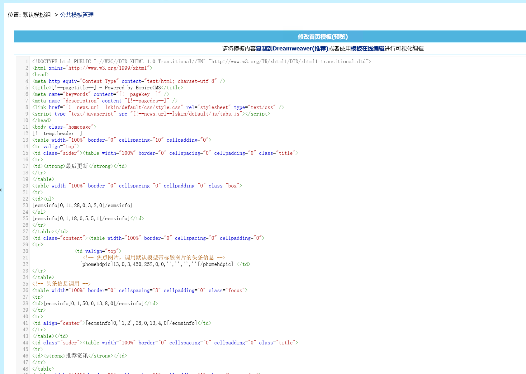 受够了帝国CMS后台模板编辑界面,给它加个代码样式让他看起来不再是一大坨